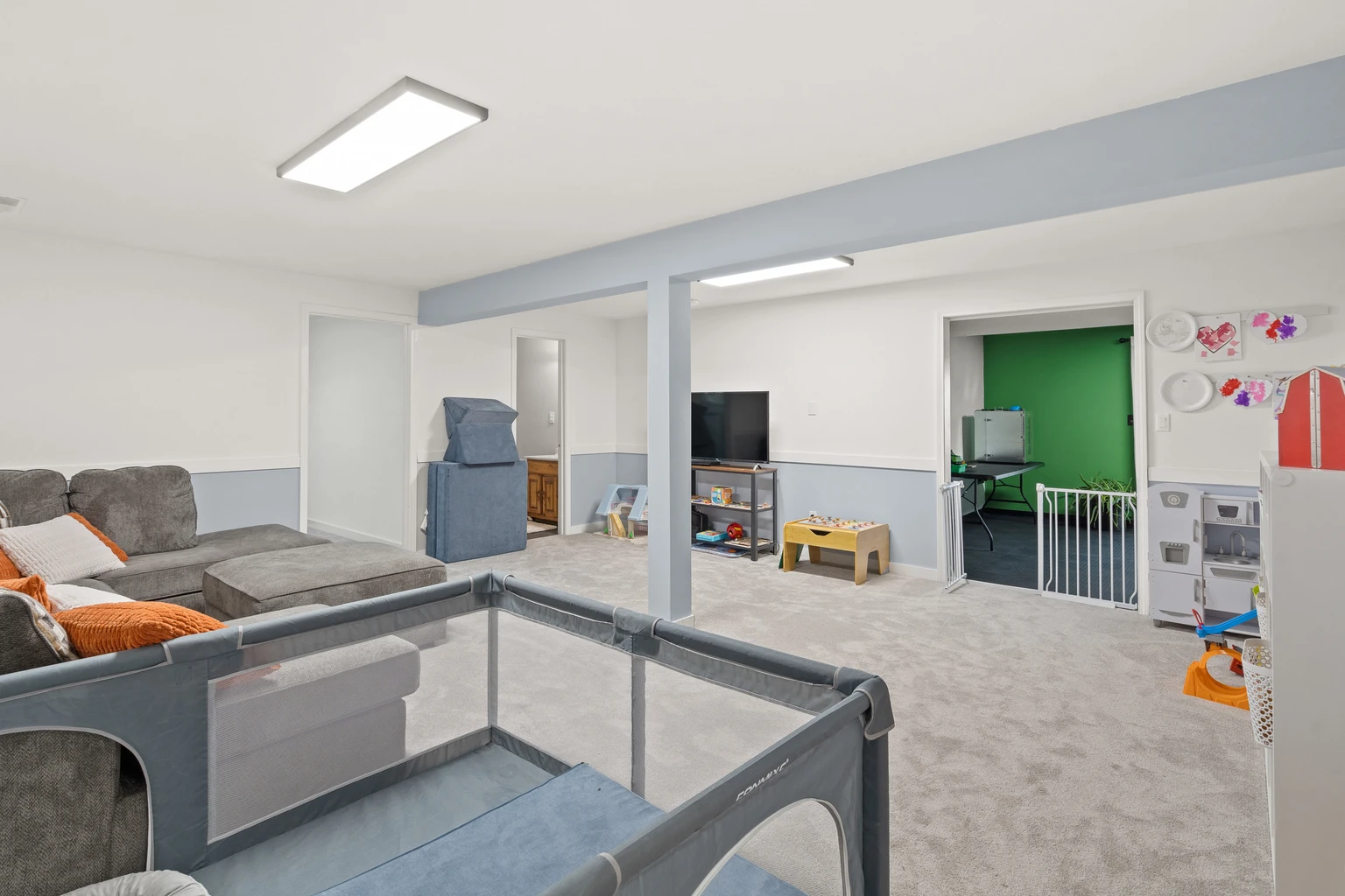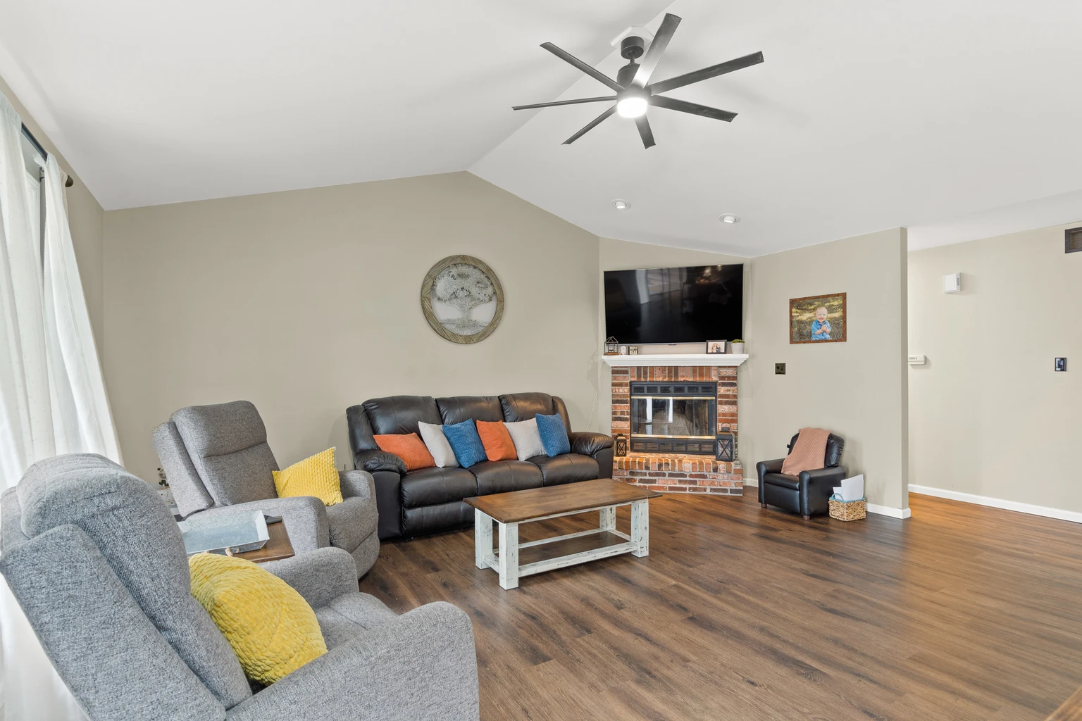 - Interior features: Multiple living spaces with large layout; finished basement